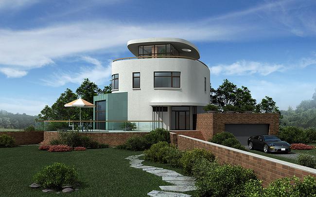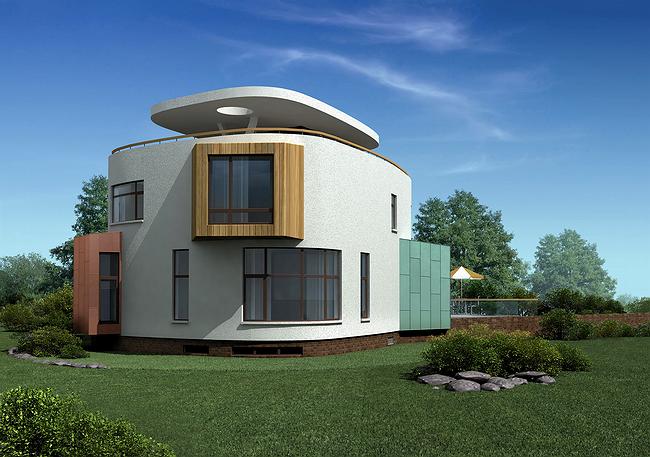 Третий дом заметно отличается от вышеописанных. Он меньше по площади и представляет собой белую четырехэтажную башню обтекаемых очертаний, похожую на немного примятый цилиндр. Форма плана была навеяна флакончиком духов «2» от Comme des Garcons. Это интересный предмет промышленного дизайна, придуманный несколько лет назад – в свое время ему даже посвятили специальную акцию, прошедшую в 10 городах мира. Чистоту формы, подчеркнутой мягкостью штукатурной отделки, оживляют эркеры. Они, как большие квадратные трубы, направлены своими остекленными отверстиями к наиболее интересным видам и кадрируют их, формируя для обитателей дома перспективные картины. Снаружи эти оконные выступы будут облицованы разными материалами, деревом и металлом, у каждого будет своя фактура и цвет. На плоской крыше дома будет устроена открытая терраса, которая добавит к искусно подобранным видам широкий обзор местности.