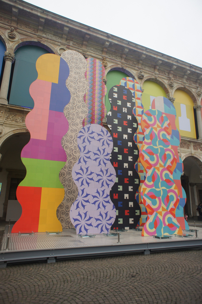 Инсталляция Surface братьев Алессандро и Франческо Мендини заняла самое заметное место в главном дворе, прямо напротив входа. Девять плоских поверхностей различной высоты и формы, с нанесенным на их поверхность с помощью струйной печати орнаментами напоминают алтарь или театральные декорации, которые постоянно меняются в зависимости от освещенности и времени суток.