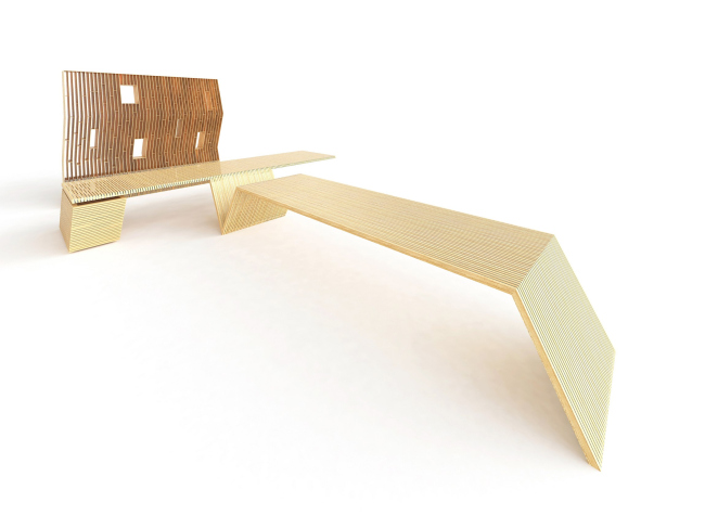 Это лаконичная форма в виде стилизованного двутавра. Она настолько проста, что превращается в символ. «Двутавр» служит столом, а если его штабелировать, то получится изящный стеллаж.