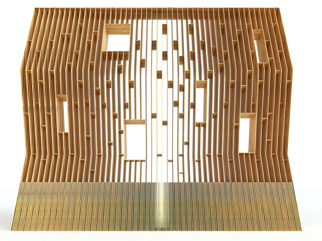 Прото-образец выполнен из деревянных ламелей и оргстекла. Стол может комплектоваться подсветкой интегрированной в его конструкцию.