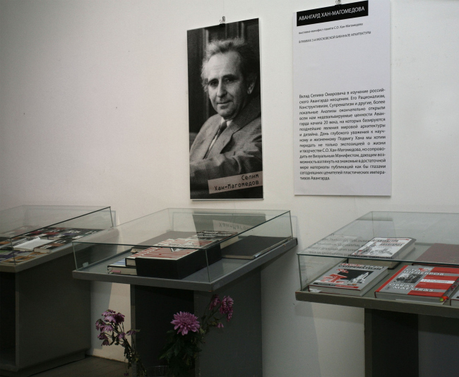 Многое из того, что составляет нынешнюю экспозицию в галерее ВХУТЕМАС, уже было представлено 2 года назад на выставке «Феномен русского дизайна» в ЦСИ М'АРС – автором концепции которой также был Александр Ермолаев. Но в отличие от той выставки основной акцент сделан на архитектуру и на время, которое изучал и о котором писал С.О. Хан-Магомедова. Его портрет открывает экспозицию, в небольшой витрине – его книги, посвященные мэтрам русского художественного авангарда – только малая толика из написанного. С.О. Хан-Магомедов издал в России и за рубежом более 450 работ, посвященных истории русскому авангарду в архитектуре и дизайне.