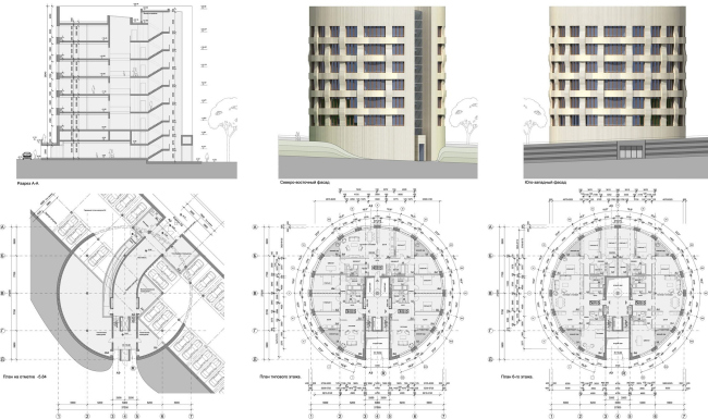 Дом, спроектированный «Остоженкой», получил название «Сектор» и в плане представляет собой четверть круга. Эта сама по себе сильная форма не требовала никаких объемных элементов, поэтому лицо фасадов здесь определяют столь характерный для «Остоженки» чуть сбитый рисунок оконных проемов и сочетание материалов отделки – натурального камня и имитации деревянной обшивки. Интересно, что сначала архитекторы спроектировали выступающие скошенные эркеры, но позже отказались от них, сочтя чрезмерными, и лишь в интерьере лобби эти выступы сохранились уже как светильники.