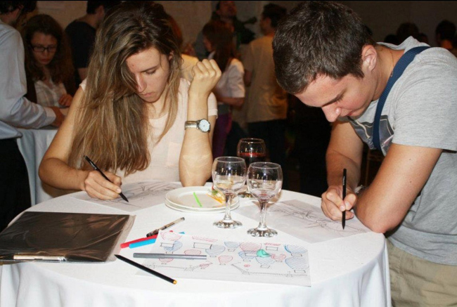Затем всем участникам, а также зрителям предложили выразить их позицию относительно «небесной линии» Петербурга графически. Организаторы заранее вручную нарисовали четыре развертки набережных. Все желающие могли изобразить свое видение силуэта города на отдельно взятом участке набережной. После чего эскизы объединили в общую панораму – и получился довольно-таки необычный 'sky line'. Результаты этой клаузуры будут размещены на страницах группы 'Arch-Meeting' (в частности, в ), а также опубликованы в виде брошюры, которую планируется напечатать к следующей встрече.