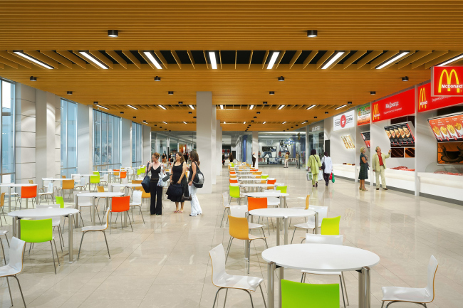 Работа над этим проектом изначально велась в сложных условиях. Во-первых, функционально-планировочная концепция будущего ТЦ уже была разработана (ее выполнило английское архитектурное бюро Dyer), во-вторых, опираясь на нее, заказчики рассчитали оптимальные для себя ТЭПы и отступать от них не хотели. Таким образом, авторы столкнулись с очень сложной задачей: концепцию необходимо было адаптировать под действующие нормативы, дополнив «голую» схему всем недостающим и при этом не уменьшив долю сдаваемых в аренду площадей, а для самого объема придумать одновременно функциональное и запоминающееся архитектурное решение.