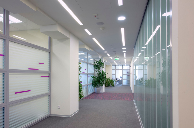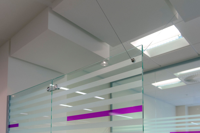 Позже эта идея была отвергнута заказчиком, и Сергей Эстрин стал искать более простой и при этом знаковый образ, который бы лег в основу концепции дизайн-проекта. Поскольку агентство Fitch Ratings специализируется на аналитике, оценках и рейтингах, то есть обработке колоссальных потоков информации, архитектор решил отобразить в оформлении интерьера процесс передачи данных. Одним из основных преимуществ этой придумки сам Эстрин называет возможность очень по-разному е изобразить: это может быть и бегущая строка, и телетайпная лента, и даже азбука Морзе. Там, где декоративные элементы необходимо было свести к минимуму, выбранная тема позволила украсить интерьер буквально одним-двумя ненавязчивыми и при этом очень точно передающими суть работы компании штрихами. Рисунок из тонких полос украсил стеклянные перегородки и двери, аналогичным образом решено и встроенное потолочное освещение, а также декоративное оформление балок и коробов инженерных коммуникаций, которые нельзя было перенести.