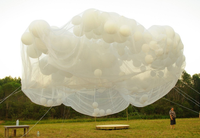 Каменные лабиринты и зависшие над ними облака, наполненные белыми воздушными шарами, завораживают не меньше, чем природное окружение. «Облака» – это один из реализованных временных объектов «Зеленой Кафедры». Сразу по завершении фестиваля их словно ветром сдуло, зато во время основного действа «облака» пользовались большой популярностью. Вокруг толпились дети, взрослые и даже животные. Кто-то пытался дотянуться рукой до облака, кто-то бессовестно добывал из их недр воздушные шары, а кто-то просто созерцал их в туманной дымке.