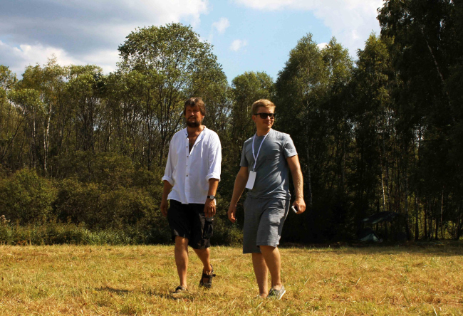 Прорвавшись сквозь тесную лесную чащу, активисты «Зеленой кафедры» принялись за обустройство «Акустической поляны», котоаря стала одной из центральных событийных площадок «Архстояния» этого года. Здесь, в низине, даже в ясную погоду дымчатым облаком висит легкий туман, отчего создается загадочная, почти сказочная атмосфера – как в заколдованном лесу.