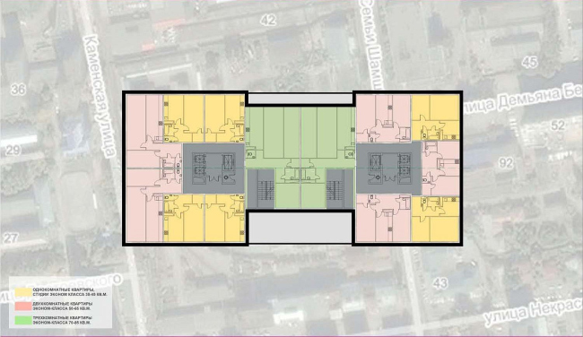 Участок, на котором предполагается построить крупный жилой комплекс со всей необходимой социальной инфраструктурой, расположен в самом центре города, между улицами Каменская, Писарева, Некрасова и семьи Шамшиных. Сегодня на этом месте находится жирокомбинат: на карте города его внушительная территория выглядит как серая заплатка на пестром ковре жилой застройки. Впрочем, и жилье здесь не отличается особой привлекательностью, поэтому одной из главных задач конкурса было не просто спроектировать вместительный жилой комплекс с домами разной ценовой категории, но придумать яркий архитектурный образ, который бы изменил лицо всего района. «У заказчика есть офис в Москве, и он расположен в Текстильщиках, - вспоминает Алексей Иванов. – Когда я в первый раз приехал туда на встречу, мне показали вид из окна на бескрайнюю панельную застройку и сказали: «Вот в Новосибирске так же, и мы хотим это изменить». Позже я лично убедился в том, что заказчики говорили правду, с той лишь разницей, что Текстильщики – это все-таки относительная окраина Москвы, а улица Писарева – самый что ни на есть центр Новосибирска. Поэтому работая над этим проектом, мы исходили из того, что необходимо придумать объект необычный, запоминающийся, яркий. В противном случае конкурс вообще не стоило бы проводить, не правда ли?»