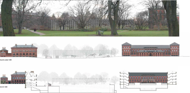 При этом большая часть площадей должна располагаться под землей, огибая корни старых деревьев, а снаружи – многочисленные исторические постройки сада – хозяйственные и административные корпуса, теплицы.