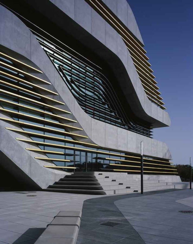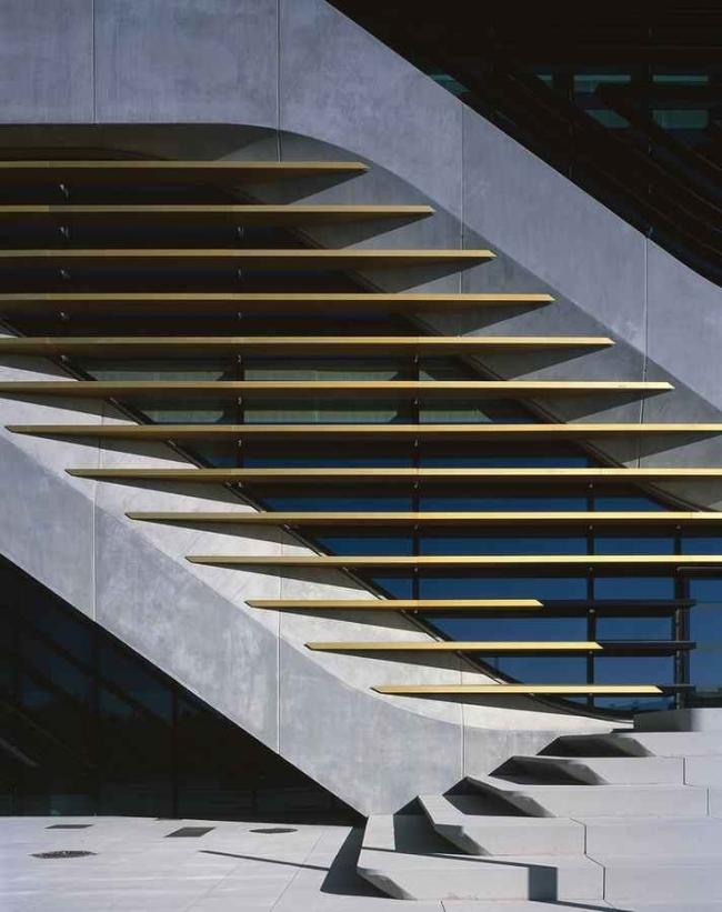 По замыслу Хадид, здание напоминает ветвящееся дерево, растущее в горизонтальном направлении. Три учреждения разделены по вертикали: внизу — архив, требующий минимум окон, выше — библиотека, где площадь остекления выше, а на самом верху и сбоку, в «кроне» дерева — хорошо освещенные солнцем офисы спортивных чиновников.