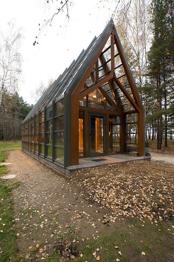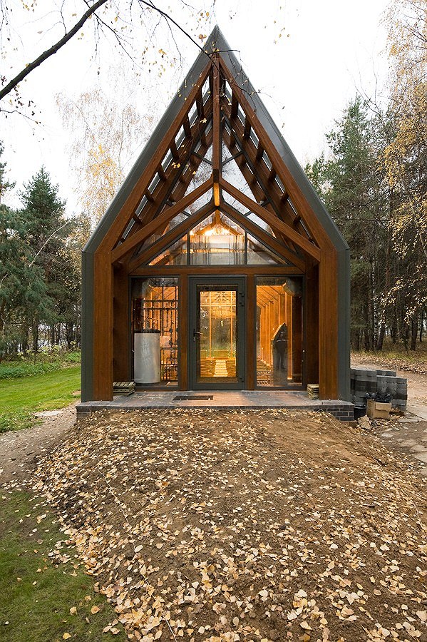 Оранжерея – это в данном случае не красивое название, а прямое указание на функцию постройки. После того, как Тотан Кузембаев спроектировал для основателя курорта «Пирогово» Александра Ежкова дом, яхт-клуб, гостевые домики и ресторан, тот заказал архитектору теплицу – выращивать экологически чистые овощи и зелень. Термин «теплица» стал для архитектора прямым указанием к действию – образ традиционной культивационной «времянки» Кузембаев переосмыслил в эффектных деревянных конструкциях.