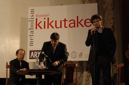 В первый день работы фестиваля, 20 октября, в Манеже прошла пресс-конференция г-на Кикутаке, на которой, он рассказал о своем видении развития архитектуры и о том, насколько актуальна в будущем может быть его теория метаболизма. Г-на Кикутаке представил собравшимся гостям главный редактор журнала «ARX» Петр Кудрявцев. Японский архитектор, его вклад в теорию архитектуры и его проекты стали главной темой первого номера нового архитектурного журнала «ARX».