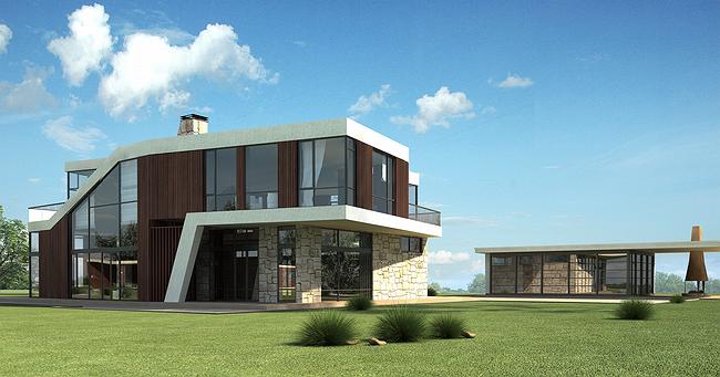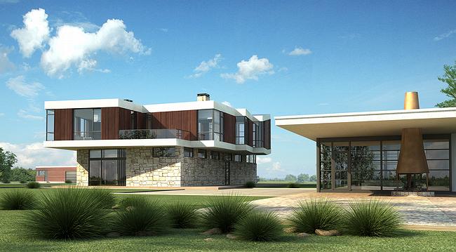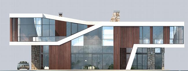 Архитекторы бюро «Панаком» продолжают создавать проекты жилых домов для территории третьей очереди поселка «Никольская слобода». Этот проект уже 5-й. И снова речь идет об участке, граничащем с общественной зоной пруда. Здесь использованы находки предыдущих проектов, что позволяет вписать дом в общий ансамбль, но есть и оригинальные решения, придающие ему индивидуальность. По мнению авторов, эта архитектура биоморфна…