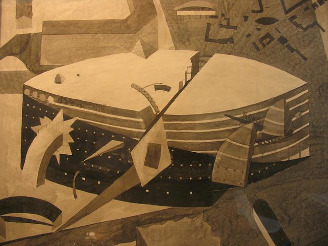 В 1970-е годы в МАрхИ возникло, а в 1980-е расцвело движение, получившее с легкой руки Юрия Аввакумова название «бумажная архитектура». Сейчас уже много сказано о том, что на самом деле оно никогда не отличалось единством и целенаправленностью, скорее это было поветрие – реакция наделенных фантазией молодых архитекторов на скуку панельного домостроения. Архитекторы придумывали фантастические проекты, красиво их рисовали, отправляли на международные конкурсы и выигрывали. Это была частью графика, частью архитектура, частью – литература, или же «концептуальное искусство». Судьбы участников движения распределились соответственно – кто-то начал строить, кто-то остался графиком, кто-то занимается производством объектов, инсталляций, хепенингов и прочего современного искусства. А один из активных участников «движения» и безусловно самый известный его исследователь, Юрий Аввакумов время от времени, то с большим, то с меньшим размахом устраивает выставки «бумажной архитектуры», напоминая зрителям и участникам о прошедшем, а критикам – о явлении. В устройстве этой выставки Юрий Аввакумов тоже участвовал, но не совсем в качестве куратора, а скорее – доброго гения. Коллекция, которая сейчас выставлена в галерее Paperworks сложилась, если можно так сказать, исторически. Где-то в начале 1990-х, теперь уже точно неизвестно, когда – но тогда художники начали свободно ездить за границу, «бумажные архитекторы» Новосибирска Вячеслав Мизин и Виктор Смышляев возили свои работы на зарубежные выставки – да некоторую часть из них так и забыли в Лондоне у одного из знакомых. Там они хранились некоторое время, пока знакомый не передал эту небольшую коллекцию известному коллекционеру «бумажных утопий» Юрию Аввакумову. У которого подборка новосибирской графики пролежала еще некоторое время, пока Аввакумов не передал ее Евгению Митте, одному из основателей галереи Paperworks. Галерея специализируется на графике, а в феврале прошлого 2006 года в ней прошла выставка трех известных мастеров московской бумажной архитектуры – Юрия Аввакумова, Александра Бродского и Михаила Филиппова. Открывшаяся 6 октября камерная выставка новосибирской графики продолжает тему и глубокомысленно рифмуется с названием галереи, заставляя заподозрить начало серии экспозиций, посвященных архитекторам-«бумажникам». Выставленная коллекция по большей части состоит из работ Вячеслава Мизина, но среди них оказалось и несколько листов Виктора Смышляева. Оба участвовали в «бумажном» движении Новосибирска с самого начала, с 1982 года. Надо сказать, что этот город – единственный, в котором помимо Москвы всерьез развернулось «бумажное творчество». Оно началось немного позднее московского и было тесно с ним связано – определенно это была в некотором роде мода, однако любопытно, что в других городах она корней не пустила. Дальнейшая судьба новосибирских «бумажников» в чем-то похожа на их московских коллег, с той лишь разницей, что среди них оказалось больше современных художников, чем строящих архитекторов (которых всего двое, Е. Буров и В. Кан). Вячеслав Мизин в 1999 году, добровольно проведя четыре дня в бетонном бункере в обществе других сибирских художников, стал одним из основателей группы «Синие носы», теперь уже хорошо известной московской арт-тусовке смешными эпатажно-раблезиан