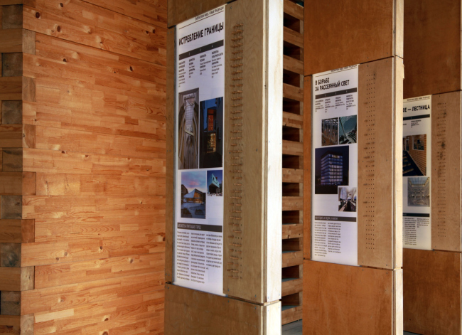 В общем, идея выставки напрашивалась сама собой – как нельзя кстати тут оказались и стартующая на этой неделе Международная ярмарка интеллектуальной литературы Non/fiction, и оставшийся с майской премии АРХИWOOD экспозиционный павильон. «Периптер», придуманный бюро Gikalo Kuptsov architects, вообще-то проектировался как временный объект, но настолько идеально вписался в подколоннадное пространство ЦДХ, что, скорее всего, останется там надолго. Вот куратор АРХИWOODа Николай Малинин и озаботился, как «Периптер» использовать, – павильон, бесспорно, хорош и сам по себе (детвора с удовольствием играет в прятки между деревянными пилонами), но все же как-то странно выставочному пространству пустовать 11 месяцев в году.