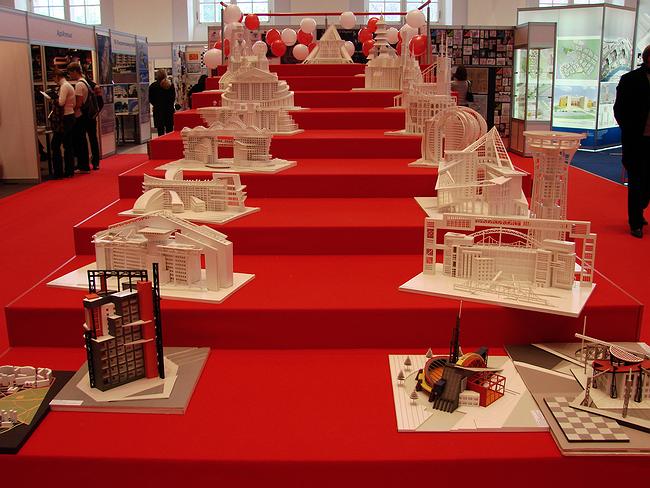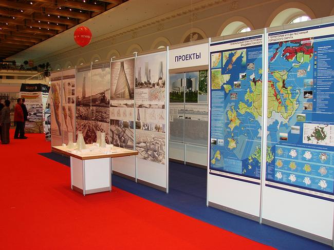 С другой стороны от входа, открывая стенды областей, расположилась очень старательно сделанная выставка Петербурга, разжившегося за последние годы сомнительной славой столицы скандальных архитектурных конкуров и обиженных иностранных «звезд». Город представил многие из своих крупных проектов – новую сцену Маринки и проект реконструкции Новой Голландии, аэропорт «Пулково» и прочие – в виде макетов, расставленных по полупрозрачной оргалитовой карте. Мягкий ковер на полу изображает карту Финского залива – все очень изысканно, а главное дорого – этот стенд затмевает все остальные «географические» экспозиции, в том числе и лидировавшую в прошлом году экспозицию Московской области с подсвеченной изнутри большой картой – последнюю на этот раз попросту повторили.