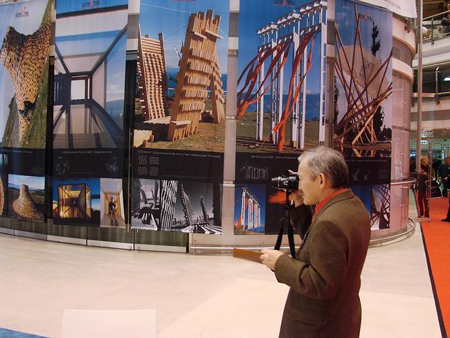 Прямо при входе размещены две иностранные экспозиции – одна посвящена итальянской премии Дедал+Минос, единственной в своем роде архитектурной награде, которая присуждается за успешное сотрудничество заказчика и архитектора. Она спрятана слева за гигантским стендом союза архитекторов России, перед которым горделиво выставлен наш, российский Дедал, который без Миноса, но хрустальный. Любопытно, что обе награды со столь перекликающимися названиями были учреждены почти одновременно – в начале 2000-х гг. Учредители российского «Дедала» - главной награды фестиваля «Зодчество», утверждают, что в то время они про итальянского собрата не знали – таким образом две премии, вероятно, стали результатом «параллельного» мышления организаторов. Правда, итальянская премия – международная, и ее лауреатами нередко становятся хорошо известные «звездные» постройки.
