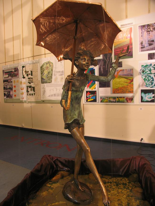 Многих посетителей выставки притягивала к себе бронзовая скульптура изящной девочки с зонтом, по которому струился дождь – еще один лауреат номинации «Предмета в ландшафте». Она не взывала ни к новаторству, ни уж тем более к языческим страстям, а наверное, просто была из нашего общего прекрасного далека.