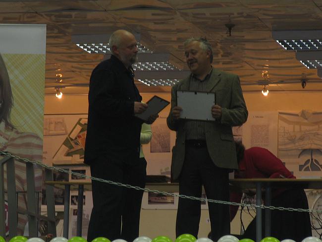 Первое место в номинации «Проект» по совокупности работ получила компания «Европарк», представившая три работы, их которых можно выделить «Вавилон» - благоустройство стилобата жилого комплекса для служащих дипломатического корпуса. За высокими и пушистыми декоративными деревцами у новых жильцов будет возможность не только прогуляться, но и подчас разрешить в непринужденной обстановке тот или иной вопрос государственной важности. Награждение Николая Полисского