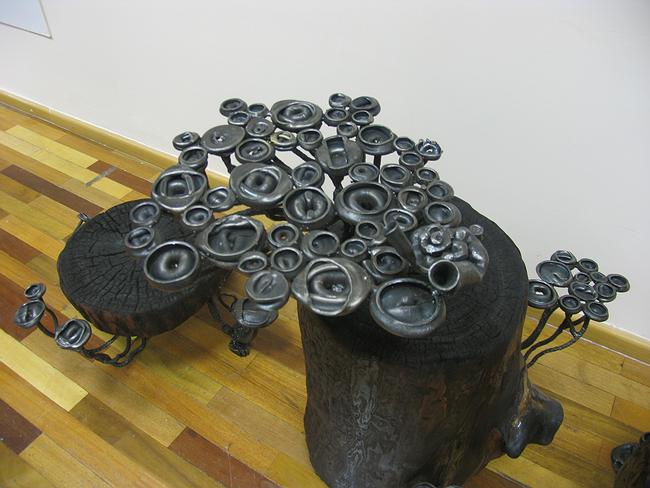 Благодаря тому, что ландшафтное искусство не обходится без малых архитектурных форм, причем очень природных и органичных, то на этой выставке всегда есть возможность увидеть эти формы в натуре, а не только изучать планшеты. Гвоздем программы, как и в прошлом году, оказалась инсталляция художника Николая Полисского, на этот раз демонстрирующая проект «Граница Империи», показанная во всей красе этим летом на фестивале «Арх-Стояние» в деревне Никола-Ленивец. В данном случае ощущение имперского величия пришлось навевать трем «делегатам» из десятков столбов, возвышающихся на огромной поляне близ калужской деревни. На верхушках гордо сидят архаические скульптурки двуглавых орлов. Проект из Никола-Ленивца получил первое место в номинации «Предмет в ландшафте» - хотя, признаться, это очень крупные предметы. Проект Полисского мог показаться очень увесистым среди более «легкомысленных» соседей – в сущности, парковой затеей его можно назвать лишь с очень большой натяжкой. С другой стороны, поэтому – из-за непохожести на большинство других работ с их пестротой и фестончиками – ему и была обеспечена награда.