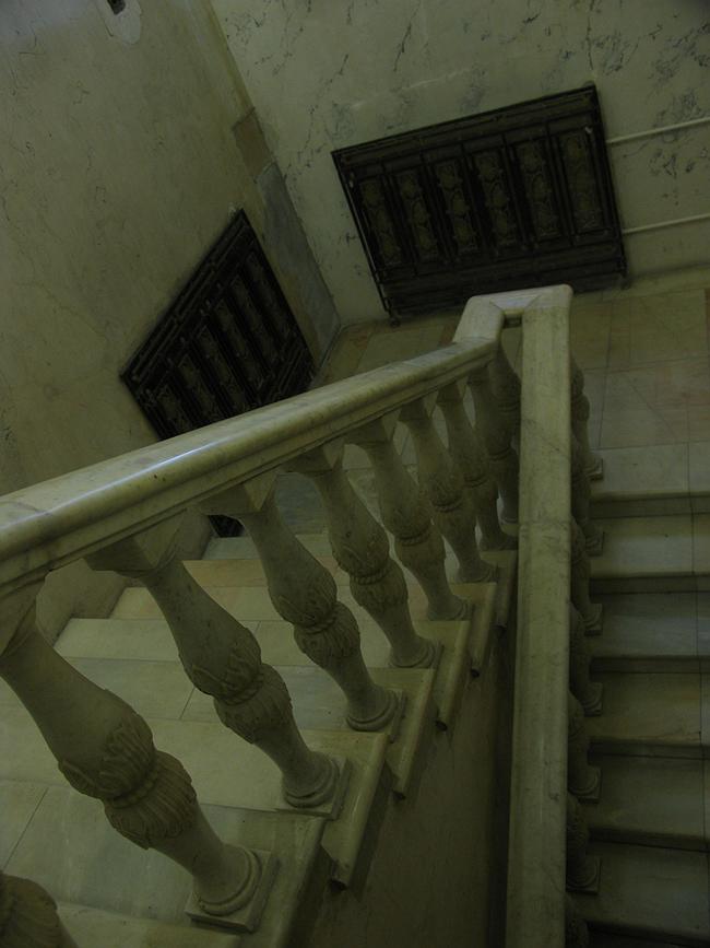 Поскольку здание разделено на две функции – в башне находится штаб-квартира ОАО «Трансстроя» (бывшего МПС), а в боковых крыльях – жилые квартиры, то боковые блоки намного скромнее. Организатор МосКультПрога Сергей Никитин договорился с жителями одной из квартир на девятом этаже, которые участника акции взглянуть на редкие подлинные интерьеры. Это оказалась небольшая по площади квартира, с высокими (3,5 метров) потолками и небольшими комнатами, в том числе и для домработницы. Стиль интерьера квартиры помимо стен создавали шкафы начала прошлого века, тома старых книг и множество статуэток. Надо отметить, что сейчас квартиры в высотках активно перестраиваются и подвергаются «евроремонту», однако не просто культурная ценность, но и материальная стоимость в дальнейшем значительно выше будет именно у оригинальных жилищ, чем переделанных «современных». Фасад здания сохранился намного лучше, однако и в нем идет замена, например, окон и дверей. Коричневые оконные рамы жилых квартир заменяются белым пластиком, а огромные витринные окна, связанные с метро, становятся мелкодробными, что конечно же портит вид фасада. Здесь вспоминается завет архитектора Душкина, за который он боролся всю жизнь, что «построить – это еще полдела, вторая половина – это сохранить построенное». Наталья Душкина. Фотография ank17. Источник: http://community.livejournal.com/