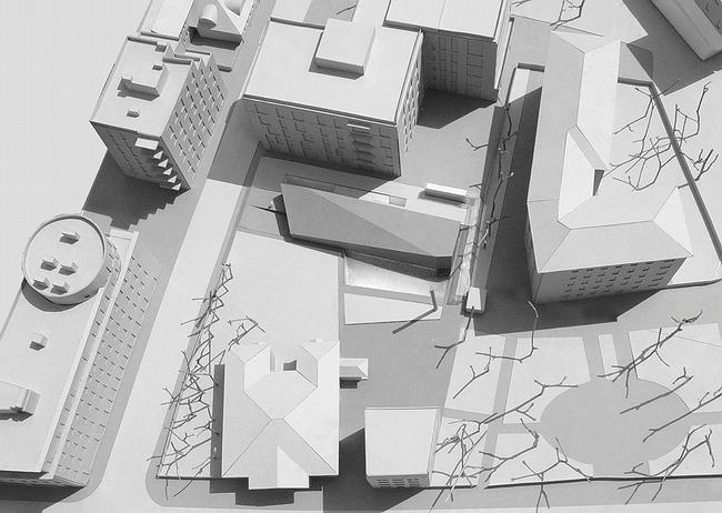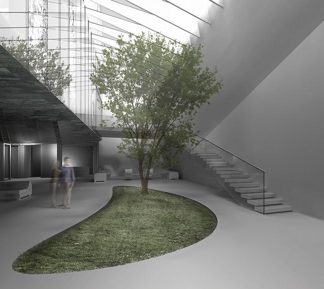Именно контекст квартала, genius loci определил первые принципиальные параметры проекта: отказ от архитектурной экспансии вверх и вширь, создание жилого объекта с условием возвращения городу максимально возможного объема воздуха, травы и деревьев – тех безусловных городских ценностей, которые были свойственны старой одноэтажной застройке. В общем, как шутит сам Скуратов, оставался один путь: «вверх по лестнице, ведущей вниз – в подземные резервы городского пространства».