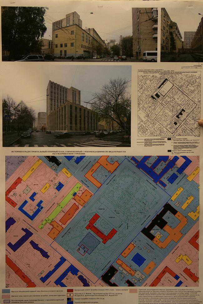 Затруднение вызвало то, что статус охранной зоны, внутри которой расположено здание, в показанных материалах был показан нечетко, а именно: в описании территория значится как всего лишь зона строго регулирования застройки, а на плане – как охранная зона. В последнем случае надстройка невозможна, во втором – возможна. При этом описание, благоволящее к надстраивателям, оказалось заверенным, а план – нет. До выяснения точного статуса территории проект решили отложить, не ставя ему «ни плюсов, ни минусов».