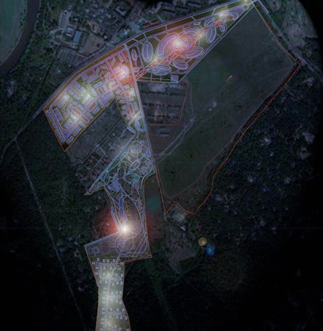 Конкурс эскизных проектов нового района состоялся в декабре прошлого года, его организатором выступила компания «ВТБ Недвижимость», которая и владеет территорией площадью 99,87 га в едва ли не самом престижном месте Московской области, между Рублево-Успенским и Новорижским шоссе. Добрая половина этих гектаров, правда, приходится на охранную зону газопровода, которая дробит участок на три почти равных сегмента. С одной стороны, это принудило инвестора включить в состав будущего жилого района ландшафтный парк (никакие другие варианты использования охранной территории невозможны), а с другой, подсказало ему идею создания трех разных по классу микрорайонов. Собственно, предметом конкурса и стали эти районы – участники должны были предложить варианты либо микрорайона малоэтажных жилых домов, либо квартала таунхаусов, либо коттеджного поселка. «Мастерская Алексея Иванова «Архстройдизайн АСД», обладающая солидным опытом работы в каждом из этих жанров, предложила концепцию развития территории целиком, потому проект и получил название «Антология».