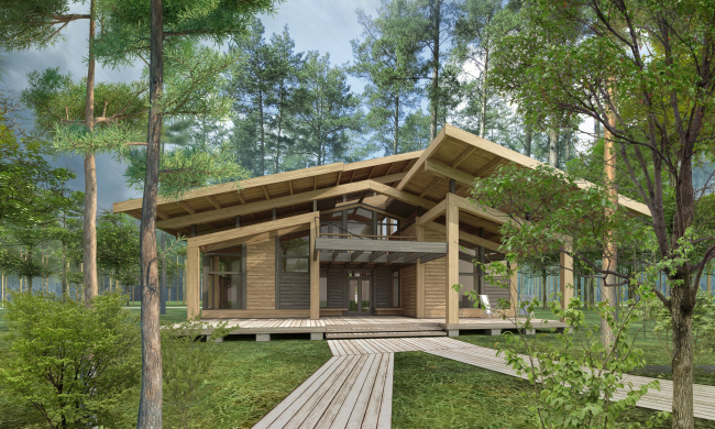 Архи.ру: Дерево так или иначе присутствует почти во всех ваших проектах, причем не только как отделочный материал, но и как конструктивная основа дома.