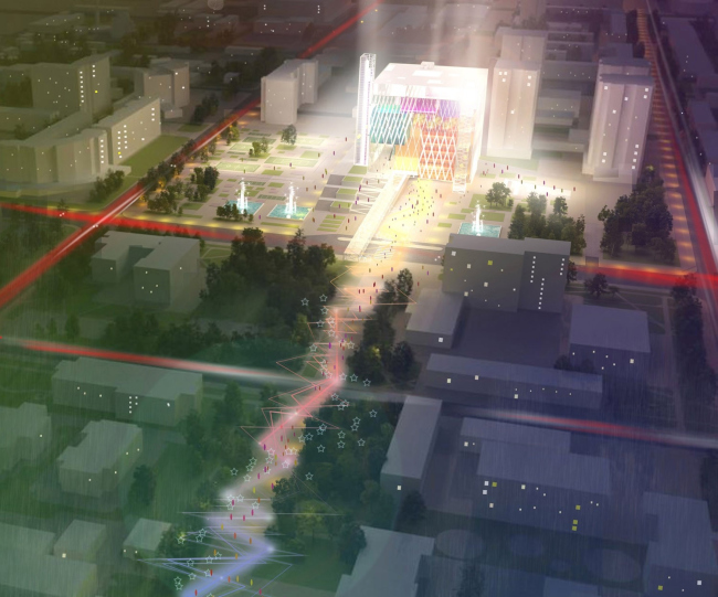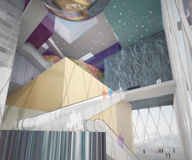 По замыслу авторов, благодаря стеклянным стенам и свободной компоновке внутренних объемов дневной свет будет проникать в самые отдаленные уголки обновленного дворца. Но, главное, прозрачная оболочка обеспечит быстрое считывание всей структуры комплекса не только изнутри, но и снаружи. Этот эффект «волшебного фонаря» не только упростит навигацию по комплексу, но и создаст запоминающийся архитектурный образ, который особенно впечатляюще будет смотреться в темное время суток.