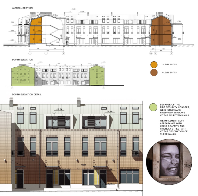 Кстати, про аксессуары – это отнюдь не фигура речи. В своей концепции реконструкции бывшего завода T+T Architects предусмотрели все возможные мелочи: и варианты отделки фасадов, и решения интерьеров, и систему навигации по комплексу. Даже в самой малой детали, будь то парковочный столбик, ограждение мусоросборочных площадок или указатели, авторы тщательно соблюдают выбранный ими стиль loft. Визитной карточкой квартала обещают стать и настенные граффити, которые подчеркнут его промышленное происхождение едва ли не столь же красноречиво, как и брутальные кирпичные стены.
