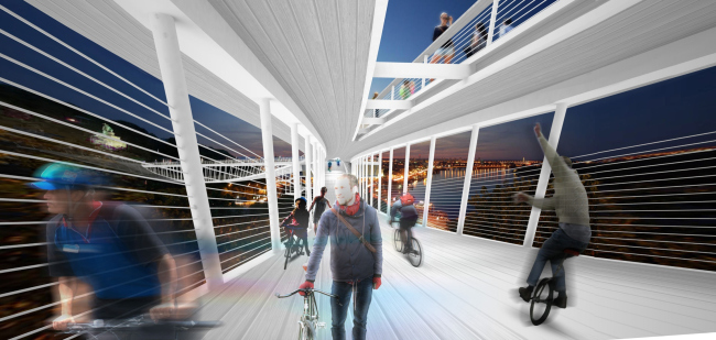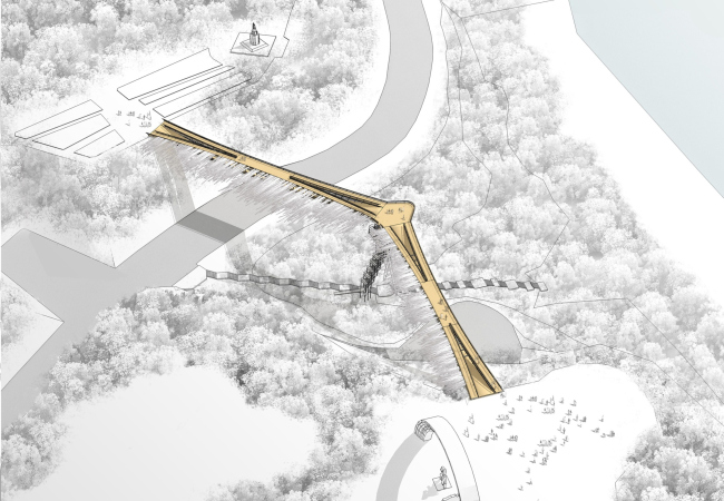 При всей своей простоте и рациональности, придуманный Асадовыми мост может похвастаться выразительной внешностью и интересной архитектурно-планировочной схемой, обещающей превпатить тривиальный переход из одного парка в другой в интересное событие.