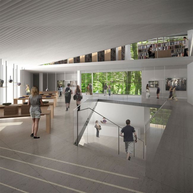 На 3 этажах новой постройки планируют разместить постоянные и временные выставки, с верхних этажей через панорамное остекление откроются эффектные виды на сад. Также появятся ресторан, павильон для чайной церемонии и аудитория на 120 мест. Общая площадь музея составит около 4600 м2.Музей и сад Альбера Кана© Kengo Kuma & Associates