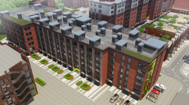 Всего в состав Loft Park войдут 9 жилых корпусов, правда, как это часто бывает, далеко не все из них являются памятниками индустриальной архитектуры. Существовавшая более 150 лет фабрика неоднократно перестраивалась, и к моменту нынешней реконструкции на территории сохранился всего один корпус, признанный особо ценным объектом, – так называемое строение 2.1, расположенное на второй линии застройки параллельно Михалковской улице. И если большую часть объемов архитекторы фактически отстраивают заново, сохраняя их изначальную «цеховую» планировку и внешность, то это здание Homeland group тщательно реставрируют, очищая и восстанавливая оригинальный кирпич, сохраняя существующие оконные проемы и основные внутренние конструкции.
