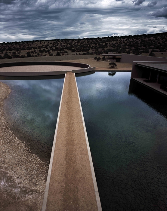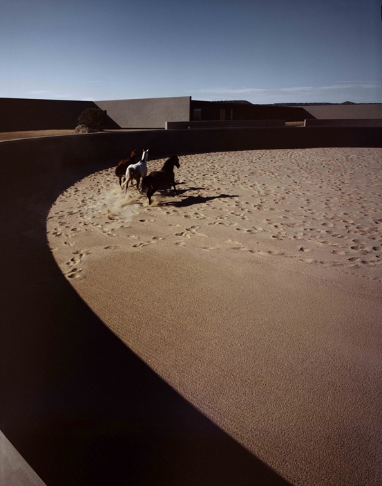 При очевидной и непреодолимой разнице культур существует некая симпатия и даже тяга американской мифологии «Дикого Запада» к японской самурайской традиции. Тема эта подробнее всего раскрыта в кино: можно вспомнить и «Великолепную семерку», и «Красное солнце», и «Телохранителя». Тадао Андо расширил параллель, спроектировав для дизайнера и кинорежиссера, а в далеком прошлом тоже архитектора Тома Форда ранчо недалеко от Санта-Фе, столицы штата Нью-Мексико.