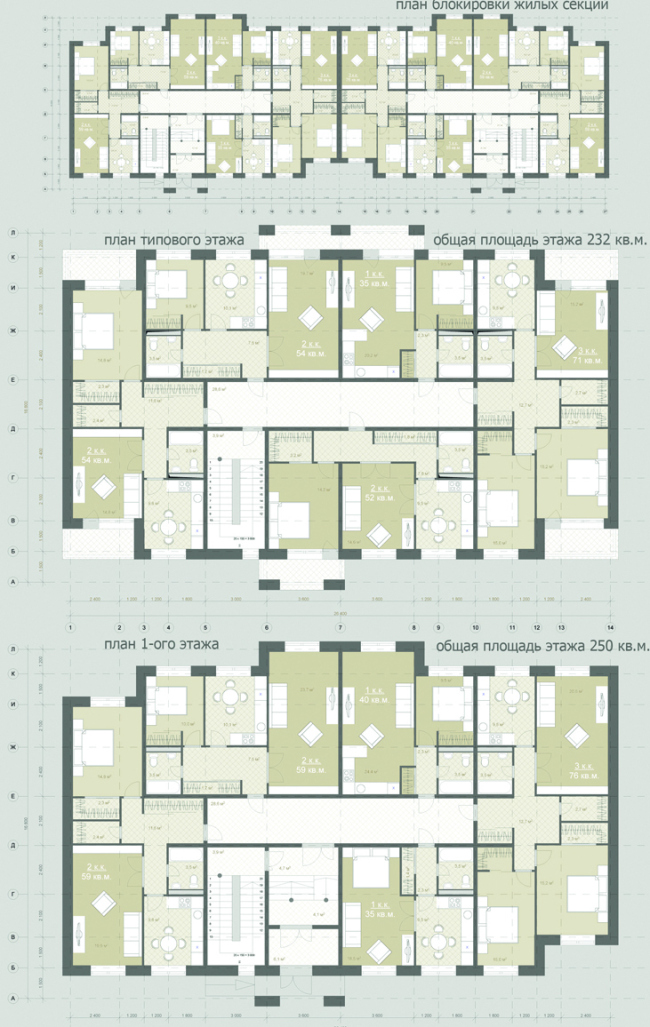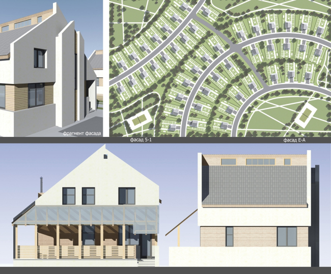 Иными словами, из нескольких простых и понятных ингредиентов мы получаем светлые, в меру проницаемые объемы, обладающие, как нам кажется, самодостаточной внешностью, которая тем не менее ничуть не проигрывает в случае многократного тиражирования. Кстати, мы по собственной инициативе разработали генпланы поселений с домами всех трех типов – хотели убедиться в том, что придуманное нами жилье не конфликтует друг с другом. Сделать подобную мультиформатную застройку основой комфортной среды обитания мы попытались с помощью радиально-кольцевой схемы генплана, в котором центральное общественное пространство не фиксируется жестко, а органично переходит в частные домовладения».
