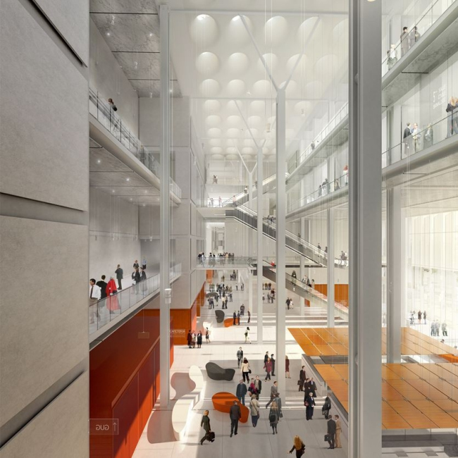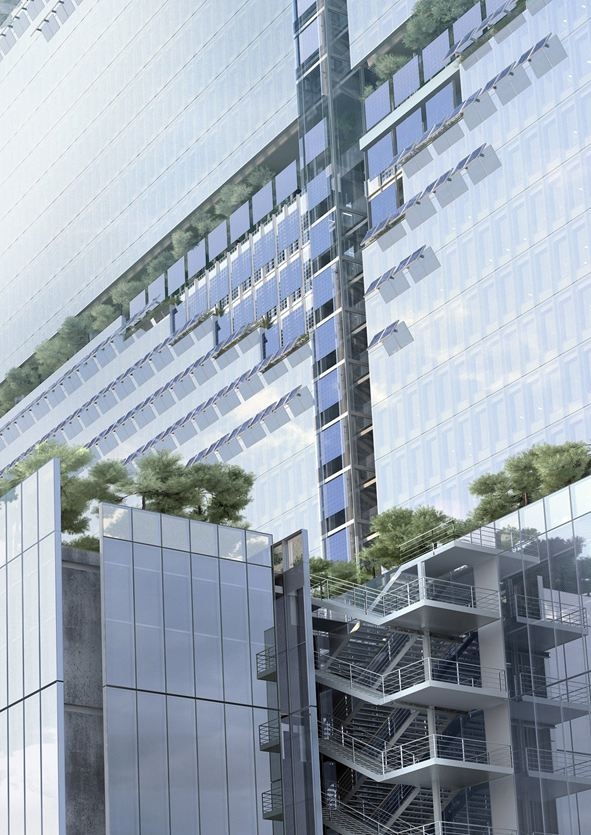 Из-за толщины здания всего в 35 м и прозрачных двойных фасадов в интерьере планируется широко использовать естественное освещение и естественную вентиляцию. На фасадах будут установлены солнечные батареи, предусмотрена система сбора дождевой воды.Парижский Дворец правосудияПредоставлено RPBW