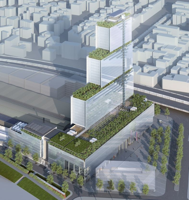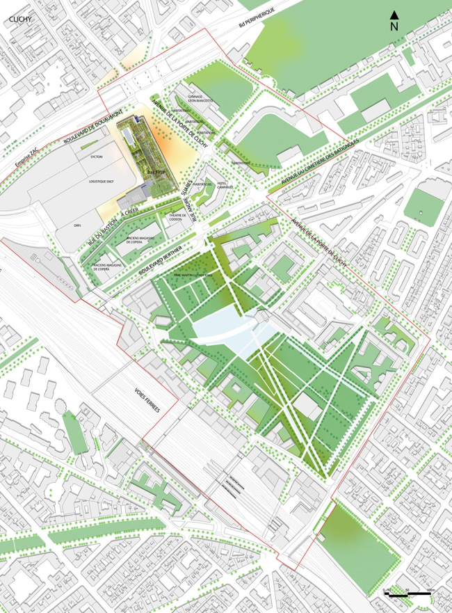 Такая ситуация особенно удивительна, учитывая статус проекта: его продвигал сам президент Саркози, и его реализация началась вопреки общественным протестам (помимо прочего, высотное здание может нарушить панорамы города). Масштаб замысла также впечатляет: на общей площади в 88,5 тыс. м2 каждый день должны будут пребывать 9 000 человек, из них 4 тыс. – служащие. Постройку составят 4 уменьшающихся по габаритам объема, поставленных друг на друга. Нижний из них, высотой 27 м, сопоставим по размерам с постройками «Парижа Османа», считает Ренцо Пьяно. В нем должен располагаться вестибюль площадью 5 500 м2 с 3 атриумами и 50 стойками рецепции. Снаружи к нему примыкает плаза размером 6 тыс. м2, откуда хорошо виден интерьер: здание подчеркнуто «прозрачно», что должно олицетворять качество французского правосудия.