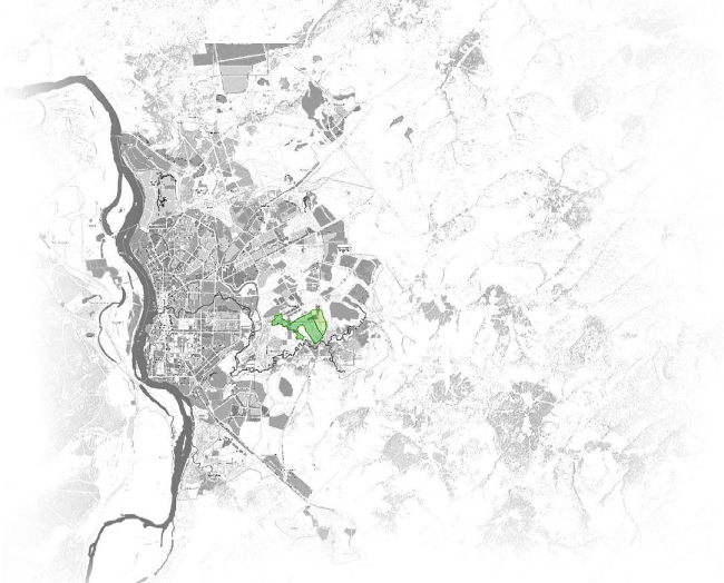 Новый томский наукоград будет расположен рядом с существующим Академгородком, к юго-востоку от него, и займет часть резервных территорий сибирского РАН (всего для него выделено 192 га). Ближайшие соседи – дачные участки, которые активно осваивают эту лесистую часть города, а также охраняемые экологами леса и извилистая речка Ушайка, впадающая в Томь. Поэтому местность, хотя и числится городской, выглядит как вполне себе дачная и буколическая. И кроме того, академическая – новый научный городок строится рядом со старым и выглядит как его прямое продолжение.