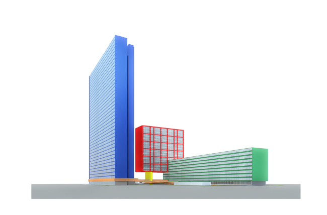Композиция комплекса сформирована из четырех разновысоких зданий, башенного типа, поставленных вдоль границ участка, соединенных в единый ансамбль с помощью периметрального двухуровневого стилобата, на кровле которого амфитеатром расположен внутренний двор – парк с детскими и спортивными площадками и прогулочными зонами.