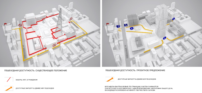 Авторы концепции предлагают расчистить территории 4-го квартала Донского района, расположенного на пересечении Шаболовки и улицы Шухова, превратив их в озелененное общественное пространство, ликвидировать все заборы, провести реконструкцию существующих зданий, сохранив при этом их функциональное назначение и права собственников, пользователей и арендаторов на их рабочие площади.