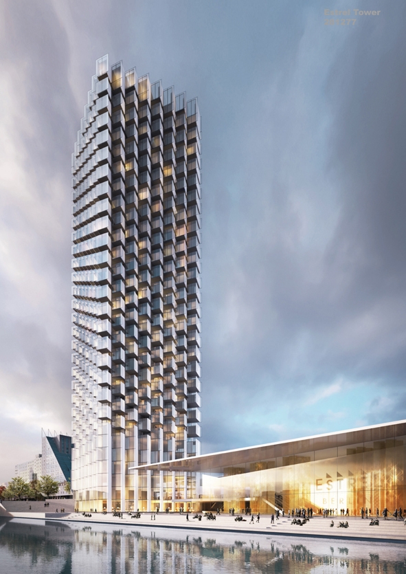 Победителем стала мастерская Barkow Leibinger, недавно уступившая Фрэнку Гери в конкурсе на проект 150-метровой башни на Александер-платц. Однако благодаря тому, что небоскреб Estrel Tower расположен далеко от исторического центра Берлина, на границе периферии и района Нойкёльн, он будет выше, чем постройка Гери: при высоте 175 м он станет самым высоким зданием столицы и самой высокой гостиницей Германии.
