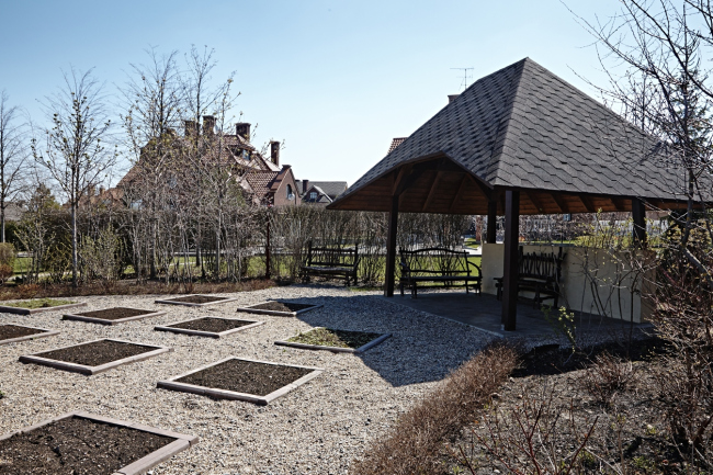 И хотя в основе планировки общественной зоны лежит жесткая структура, изнутри мы попытались заполнить ее сложным многообразным узором. Создали своего рода пазл из парков разных «стилей». Это и русский сад с яблонями и вишнями, и французский парк, и сад камней. Получившийся бульвар представляет собой зеленую полосу 50-метровой ширины, длина которой составляет целый километр. Мыслимо ли подобное «нецелевое» расходование пространства сегодня? Думаю, что вряд ли. Но «Графским прудам» повезло, и жизнь этого поселка вертится вокруг многоплановой зеленой зоны, к которой «подключены» самые разные общественно-социальные функции. Поселок «Графские пруды» © Архстройдизайн АСД