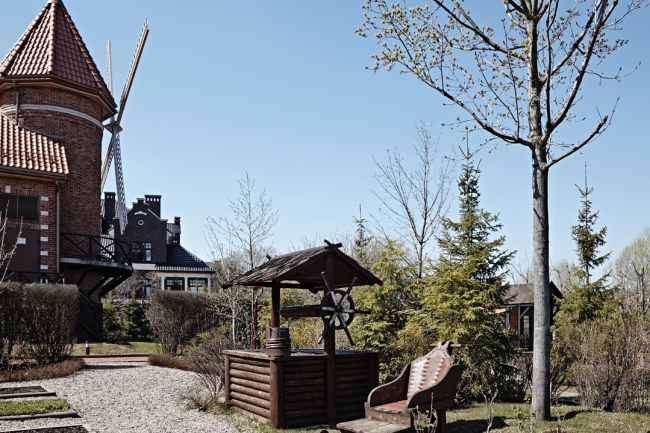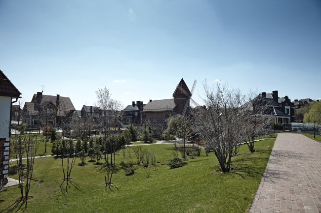Фактически мы разбиваем в центре поселка огромный парк, а его делим на отдельные тематические сегменты, каждый из которых трактован как фрагмент пазла под названием «Европа». Есть здесь и английский пейзажный сад, и регулярный французский, и по-немецки основательная детская площадка, в основу которой мы положили сюжеты сказок братьев Гримм, и живописная лужайка с тюльпанами – привет от Нидерландов, и небольшая душевная пивная – «визитная карточка» собственно Бельгии. Плюс благоустроили пляж, сделали лодочную станцию. А небольшие инфраструктурные объекты стилизовали под «европейские» постройки – мельницу (ТП), домик охотника (очистные сооружения) и т.д. Поселок «Бельгийская деревня» © Архстройдизайн АСД