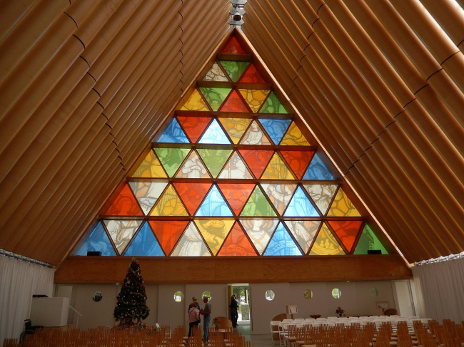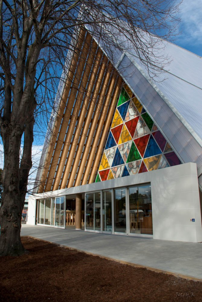 Собор из столь любимого Сигэру Баном материала – картонных трубок – построен во втором по величине городе Новой Зеландии Крайстчерче, три года назад пережившем разрушительное землетрясение магнитудой 6,3 балла: оно почти полностью сровняло с землей его исторический центр. В частности, разрушен оказался кафедральный собор: его колокольня обрушилась, другие части здания тоже пострадали, и в марте 2012 года администрация города приняла решение о невозможности восстановления комплекса. Вместо этого к реализации был принят проект временного культового сооружения – картонного собора, предложенного Баном. Изначально речь шла о 15-летнем сроке службы этого объекта, а сейчас, когда собор уже открылся для прихожан, власти города говорят о том, что он будет использоваться около 50 лет, в течение которых приход сможет построить новый каменный храм.