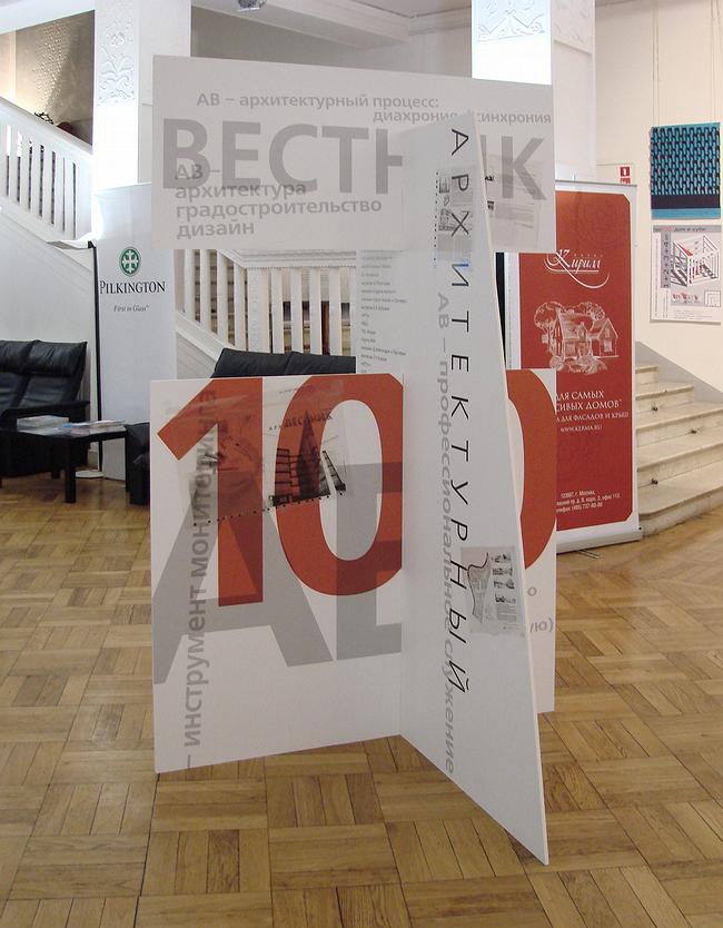 Другую часть выставки составляет подробная история журнала, который начался в 1992 году, подхватив эстафету в бозе почившей «Архитектуры СССР», где будущий главный редактор «АВ» Дмитрий Фесенко в 1991 г. работал младшим научным сотрудником. Первый номер «Архитектурного вестника» был выпущен в виде похожего на газету листка «третьего формата», и практически полностью собственноручно сделан Дмитрием Фесенко. Вскоре в «АВ» пришел Андрей Гозак, который был главным художником все той же «Архитектуры СССР», и таким образом «листок» превратился в журнал, но унаследовал стилистику предшественника. С момента своего создания журнал существовал на средства архитекторов, которые когда-то скидывались «с миру по нитке», а впоследствии вошли в Попечительский совет.