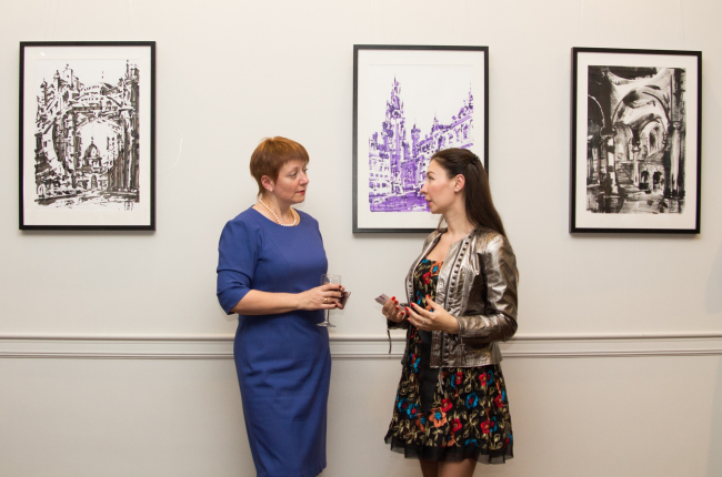 Выставка рисунков Сергея Эстрина стала первой экспозицией нового цикла под названием «Хобби архитектора» – инициативы владельца галереи Unique Floors Федора Белобородова. Всего на ней было представлено около 20 графических работ, выполненных в разных техниках: как традиционных (перо, сухая кисть, уголь, отмывка, пастель, фломастеры), так и уникальных, к числу которых можно отнести роспись сусальной медью и рисунок по фольге. Как рассказал Архи.ру сам Сергей Эстрин, рисование для него является именно хобби, и в этом смысле выставка как нельзя более точно соответствует названию всего цикла. «Если бы это была коммерческая работа, то все просто: использовал несколько наработанных приемов, «настрогал» как можно больше работ и вперед, продавать. Но я главную прелесть нахожу именно в том, что можно никуда не гнать и пробовать разные техники. Пером, кистью, окурком или палкой, – словом, все, что в голову придет. Можно даже бумагу художественно поджигать. Мне все время хочется попробовать что-то новое – материал, технику. Когда эксперимент получается, испытываю невероятное удовлетворение и драйв. Например, оказалось, что серебристая фольга на черном фоне смотрится очень выразительно».