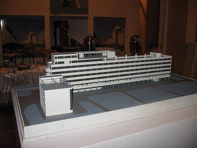 Оба корпуса и переход между ними, а также парковая зона в проекте сохраняются. В основном 8-этажном здании, где Гинзбургом были спроектированы квартиры разных типов для разных семей, будут теперь гостиничные номера, ресепшн, холл, гардероб, магазин, лобби-бар. Площадь 4-этажного коммунального корпуса вместит переговорную, бизнес-центр, конференц-зал, фойе, ресторан, и все это естественно камерных масштабов, поскольку эксклюзивный «авангардный аттракцион» рассчитан на совсем не большое количество постояльцев.