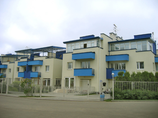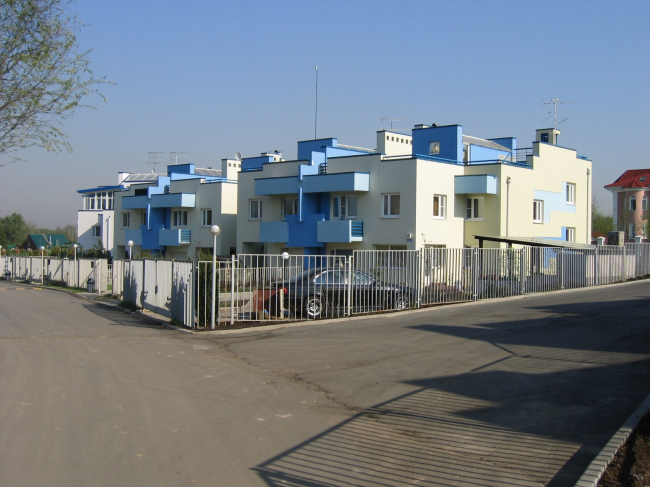 – Этот проект не принес нам никакой прибыли, но действительно сделал нас известными, благодаря чему мы впоследствии получили немало заказов на разработку проектов поселков таунхаусов. И даже наш нынешний «многосерийный» проект – Олимпийская деревня «Новогорск» – пришел к нам благодаря «НовоАрхангельскому». Что касается темы таунхаусов, то я погрузился в нее с начала самостоятельного фриланса в 90-е годы и, можно сказать, продолжаю развивать эту тему, идя по пути «от коттеджа к микрорайону». В 1998-99-м я буквально «горел» этой темой, предлагая ее инвесторам и убеждая их, что таунхаус перспективней и лучше коттеджа и гораздо больше подходит для подмосковного пригорода. Результатом стали первые 3 таунхауса для «МИЭЛЬ» в Ромашково, спроектированные и построенные в 1999-2000 гг. Таунхаусы в Ромашково © «Архитектуриум»