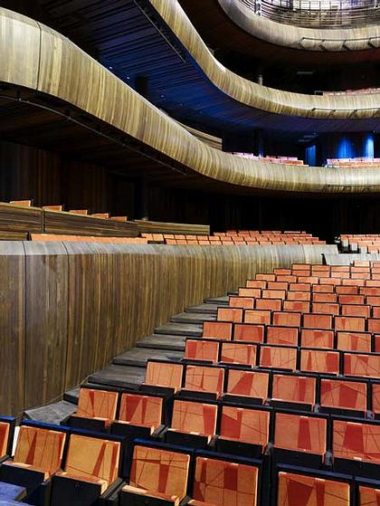 Зрительный зал решен в демократическом духе: там не предусмотрено лож. Общая его структура основывается на решении дрезденского оперного театра Готфрида Земпера, но оформление криволинейных плоскостей зала деревянными панелями, безусловно, очень далеко от этого необарочного прототипа.